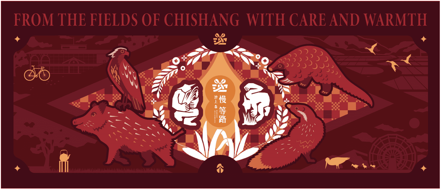 「个慢等路」一詞取自客語中「伴手禮」的意涵,象徵將土地所孕育的人情與溫度轉化為一份可以分享的心意。透過禮盒形式,讓池上的生活節奏與文化記憶被帶入不同城市與日常場景之中,使地方價值得以持續被傳遞。