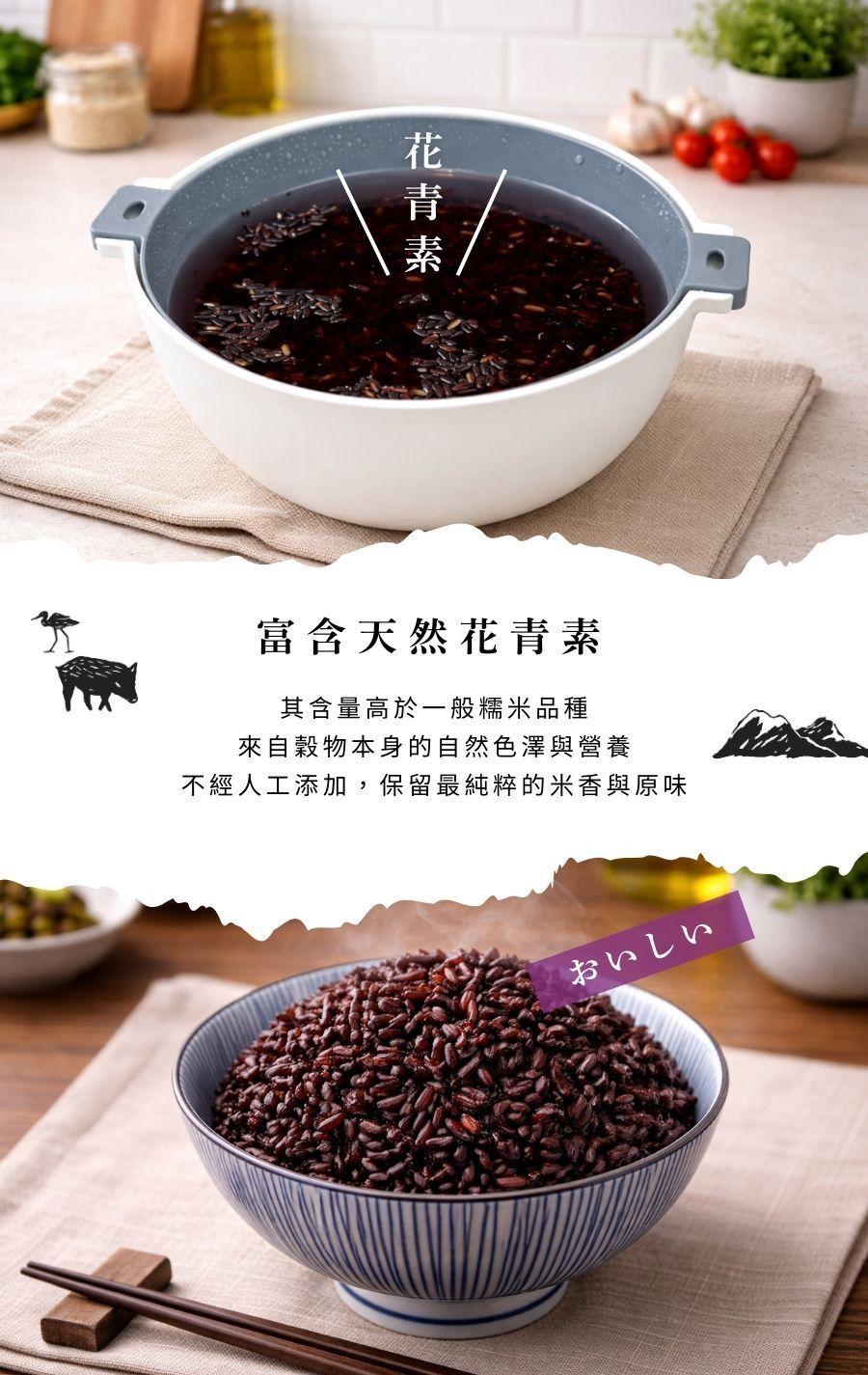 色澤與營養皆源自自然,不經人工添加,只留下最單純的米香與原味。