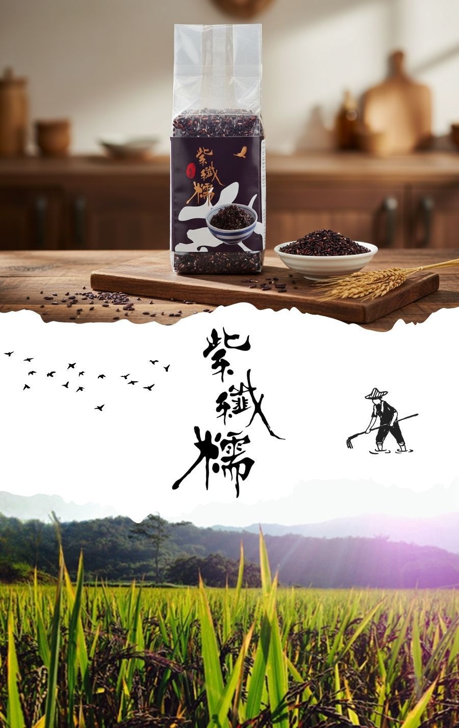 米粒呈現自然的深紫色澤,帶著溫潤而細緻的紫米香氣。